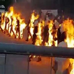 (فیلم) خودسوزی هم زمان ۳۲ نفر!