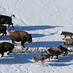 (فیلم) حمله دسته جمعی گرگ ها به گله گاوهای وحشی