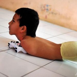 (فیلم) مهارت عجیب کودک بدون دست و پا
