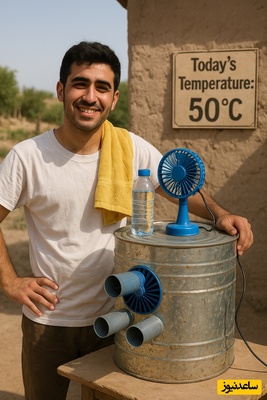 خلاقیت خندهدار جوان ایرانی در ساخت کولر با قوطی حلبی برای فرار از گرمای 50 درجه شاهکار هنری نیست؟/هنر نزد ایرانیان است و بس