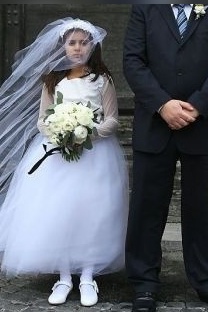 جشن ازدواج دختر 11 ساله اشک همه را در آورد / پدرش حلقه ازدواج را در دست دخترش کرد + عکس