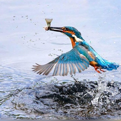 تصاویری زیبا از یک شاهکار طبیعت؛ عکاسی از لحظات شکار ماهیخورک گوشآبی+ تصاویر