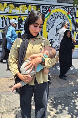 (عکس) اقدام شجاعانه مردم ایران در شرایط جنگی کشور: حضور خانوادگی در راهپیمایی جمعه همدلی / آهای اسرائیلیها ما روی زمینیم، شما زیر زمین!