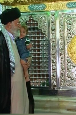 وقتی رهبر معظم انقلاب نوه بغل به زیارت رفتند +ویدیو/ لحظاتی شیرین از حس و حال معنوی رهبری در کاشان