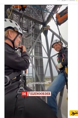 خواستگاری یک دیوانه فوتبال از عشقش بر فراز بام استادیوم فاینورد در هلند +فیلم/ فقط وقتی که خانومه انگشتر رو دید