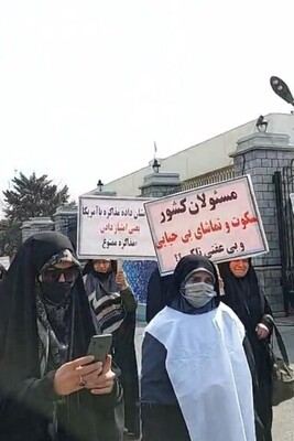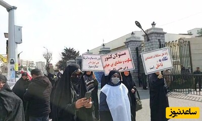 تجمع کفن پوشان در حمایت از قانون حجاب از زاویه ای دیگر: یک کودک شیرخواره در سرمای تهران روی کف پیاده رو +عکس