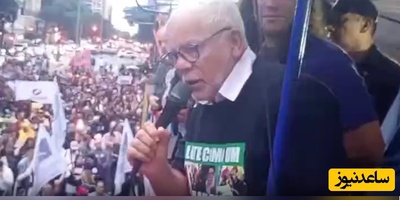 سیل جمعیت برزیل در حمایت از ایران و لحظه رونمایی از تیشرتی با نوشته خاص و تصویر رهبر شهید انقلاب+ ویدیو