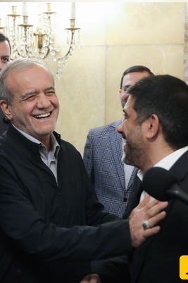 (فیلم) وقتی علیرضا دبیر کت داماد پزشکیان رو پوشید! / پزشکیان: نذاشتن کت بپوشی؟ ؛ علیرضا دبیر: از وقتی شما کت نمیپوشی دیگه راحت شدم