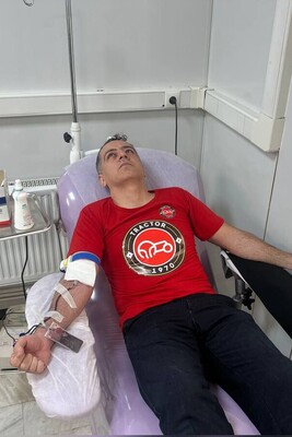 اهدای خون مربی و قهرمان بین المللی کیک بوکسینگ به عشق قهرمانی تراکتور