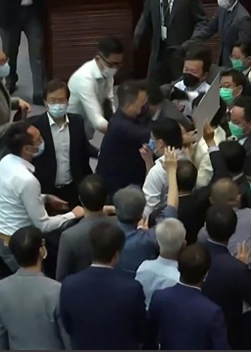 (فیلم) کتک کاری نمایندگان مجلس هنگ کنگ در صحن علنی