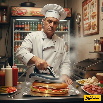 آخرالزمان صنف فست فودی؛ ابتکار عجیب ساندویچفروش مخترع در آماده کردن غذای مشتریان با اتو/ ساندویچی که با ضمانتِ بدون چروک، تحویل مشتری داده میشه!😂+فیلم