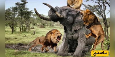 (ویدئو) مستند حیات وحش حیوانات/ تلاش شیر نر برای کشیدن یک فیل غول پیکر روی زمین