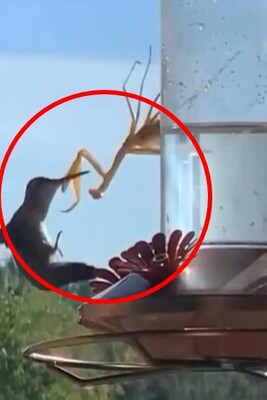 (فیلم) حیات وحش؛ لحظه شکار یک پرنده توسط یک حشره و خوردن او! / ملخ نبین چه ریزه!