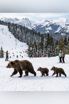 (ویدئو) لحظاتی نفسگیر از حیات وحش در پیست اسکی؛ حمله خرسها به سمت اسکیبازان