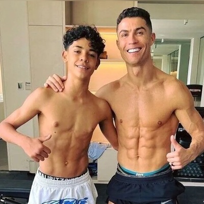 تصویر جالب و دیدنی از بدن رونالدو کنار پسرش/ واقعا پدر و پسر بدن های آماده ایی دارن + عکس