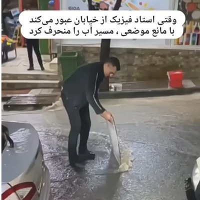 خلاقیت یعنی از کمترین امکانات، هوشمندانهترین راه رو بسازی!؛ ابتکار استاد فیزیک در رد شدن از خیابان به هنگام سیل و آبگرفتگی+ویدیو/ عجب نابغهایی👌