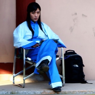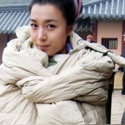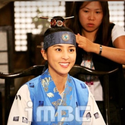 «سوسانو» در حال مرتب کردن موهایش در پشت صحنه سریال جومونگ؛ سال 1384