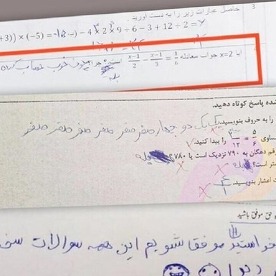 خلاقیت خنده دار معلم ایرانی در ورقه امتحان ریاضی برای توصیف عملکرد دانش آموزان/ الحق که هنرمند واقعی تویی😂+فیلم