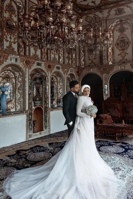 نگاهی به تالار عروسی خاص شاهنشاهی و لباس عروس شیک و توری مرجان سلحشوری، دختر تکواندوکار ایرانی +عکس/ مبارکاا باشه