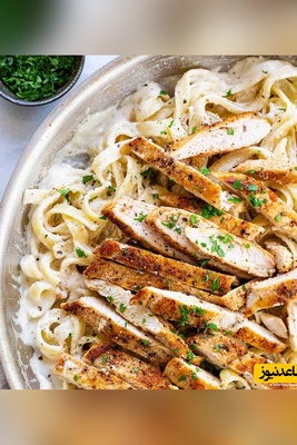 طرز تهیه پاستا مرغ و قارچ با سس آلفردو به روش رستورانی