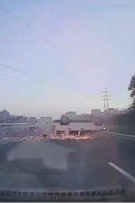ببینید| لحظه حادثه عجیب برای خودرو در حین تغییر لاین در جاده/ فقط میخواست لاینشو عوض کنه چرا پرواز کرد؟