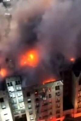 ویدیو هوایی آتش سوزی وحشتناک و غیرقابل کنترل در داخل شهر/ همه مردم منطقه مجبور به فرار شدند