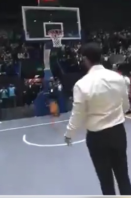 بسکتبال بازی کردن جولانی با لباس پلوخوری در افتتاحیه یک ورزشگاه؛ وقتی پس از تلاش فراوان یکی از توپهای پرتابی رئیسجمهور سوریه به تور رفت!+ویدیو