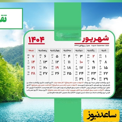 تقویم شهریور 1404 با 7 روز تعطیل رسمی + مناسبتهای این ماه