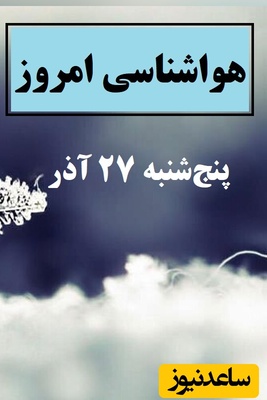 برف و کولاک در 9 استان / هواشناسی امروز پنجشنبه 27 آذر؛ وضعیت آب و هوا و شاخص آلودگی هوای تهران، تبریز، اصفهان، مشهد، اهواز، قزوین، شیراز، بوشهر، رشت، ارومیه، کرمانشاه و یزد
