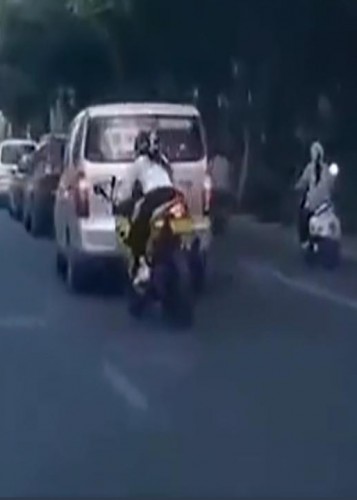 (فیلم) کله معلق زدن موتورسوار زن پس از تصادف با ون