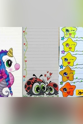 سری هفتم ایدههای ناب تزیین دفتر مشق/ مدل تزیین دفتر مشق 2025 با جدیدترین نقاشی حاشیه دفتر بانمک و فانتزی رنگی رنگی!(عکس)
