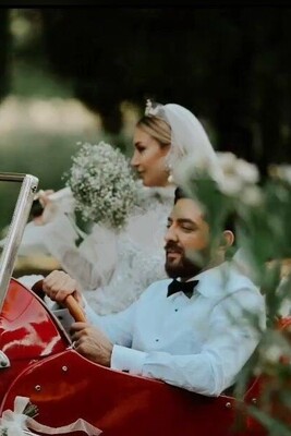 نگاهی به سبک و سلیقه مینا مختاری و بهرام رادان برای انتخاب ماشین عروس کلاسیک آلبالویی رنگ در گرجستان+عکس