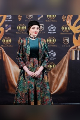 نگاهی به مراحل آماده سازی لباس فاخر بهنوش طباطبایی در مراسم جشن حافظ/استایل مجلسی شیک با طرحهای بُته جقهای سنتی