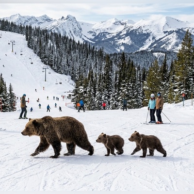 (ویدئو) لحظاتی نفسگیر از حیات وحش در پیست اسکی؛ حمله خرسها به سمت اسکیبازان