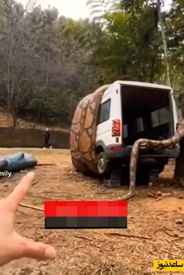 (فیلم) حمله مار پیتون غول پیکر به خودروی گردشگران محلی / واقعیه یا ...؟
