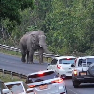 ببینید/ فیل عصبانی درست در وسط خیابان/ واای ماشینا چه فراری کردند!