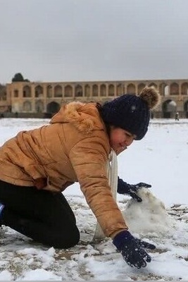 تصاویری از خوشحالی و برف بازی مردم در زایندهرود اصفهان