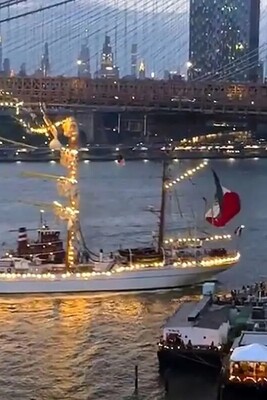 لحظه مرگبار برخورد کشتی نیروی دریایی مکزیک با پل معروف بروکلین با 19 زخمی + ویدئو