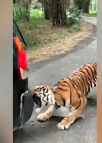(فیلم) حمله دلهره آور ببر بنگال به جیپ گردشگری!
