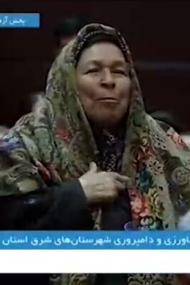 (فیلم) پیش پرده جالب سخنرانی پزشکیان در فیروزکوه توسط یک بانوی باغدار هنرمند