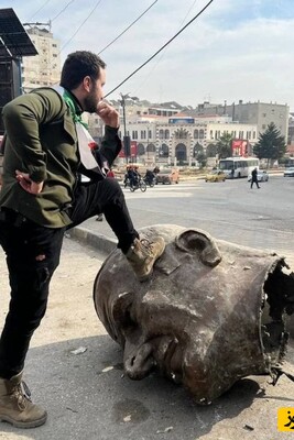 هلهله و شادی در لاذقیه بعد از تخریب مجسمه حافظ اسد پدر بشار اسد +فیلم