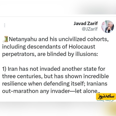 پیام میهن پرستانه محمد جواد ظریف در فضای مجازی: نتانیاهو و همدستان بی فرهنگش با توهمات کور شدهاند!