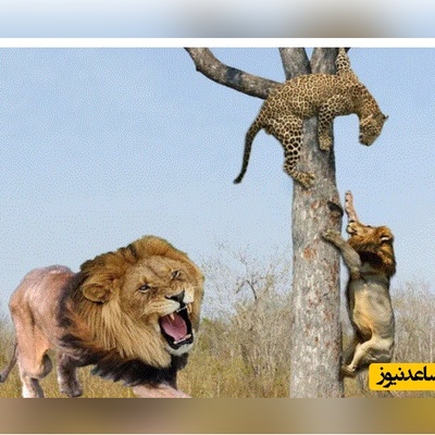 (ویدئو) حیات وحش ؛ مستند حیات وحش حیوانات/ تلاش شیر نر برای بالا رفتن از درخت و تصاحب شکار پلنگ