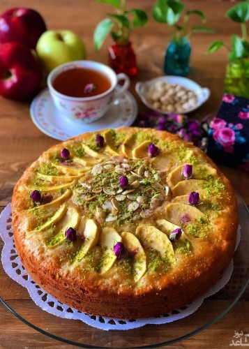 طرز تهیه کیک سیب و گردو با ماست