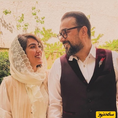 نمایی از لباس عروس شیک و خانومانه مونا کرمی و لباس دومادی سپند امیرسلیمانی زوج خوشبخت هنری/ به پای هم پیر بشید