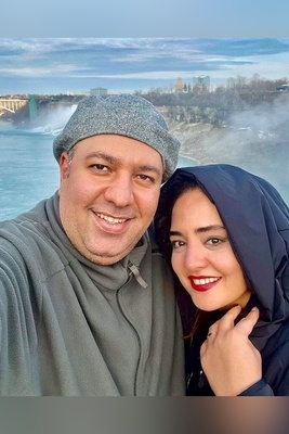 عاشقانه نرگس محمدی و علی اوجی در کنار آبشار نیاگارا/ همیشه به خوشی + عکس