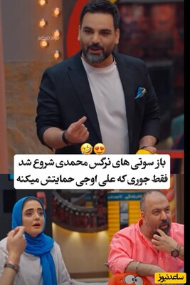 ویدئو/سوتیهای خندهدار نرگس محمدی با احسان علیخانی در جوکر خانوادگی😂/ فقط ببین چجوری علی اوجی پشت همسرش وایساد👌