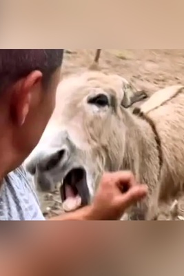 خر عصبانی/ لحظه ای که دست مرد را گاز گرفت + فیلم