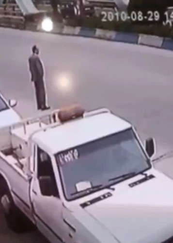 (فیلم) لحظه برخورد درب اتاق عقب نیسان با عابر پیاده