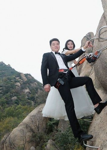 ازدواج عجیب یک عروس و داماد در میان صخره های کوهی در چین